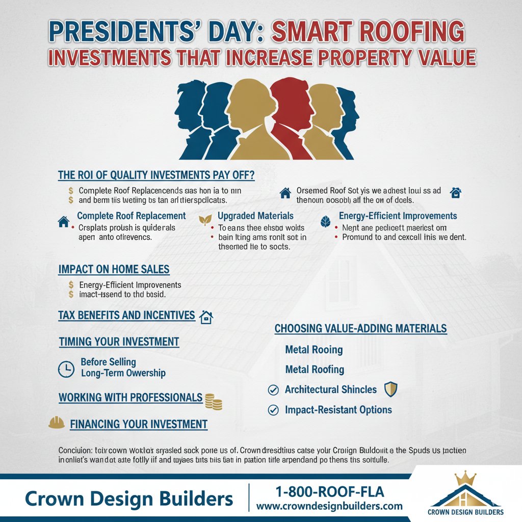 This Presidents' Day, learn how quality roofing investments can significantly increase your property value. Explore ROI calculations, value-enhancing improvements, and available tax credits or discounts for homeowners.
