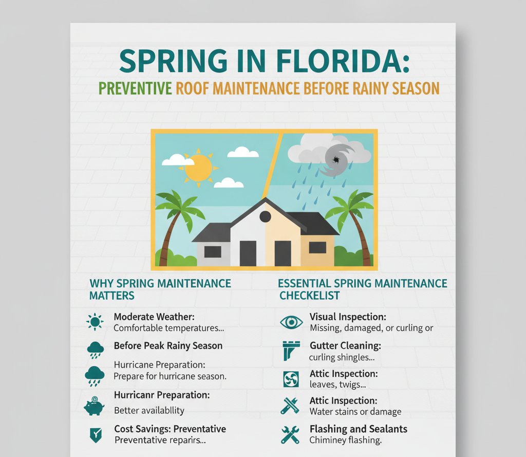 Spring is the ideal time for preventive roof maintenance in Florida. Discover essential maintenance checklists, gutter cleaning tips, leak detection, and storm preparation strategies to protect your home.